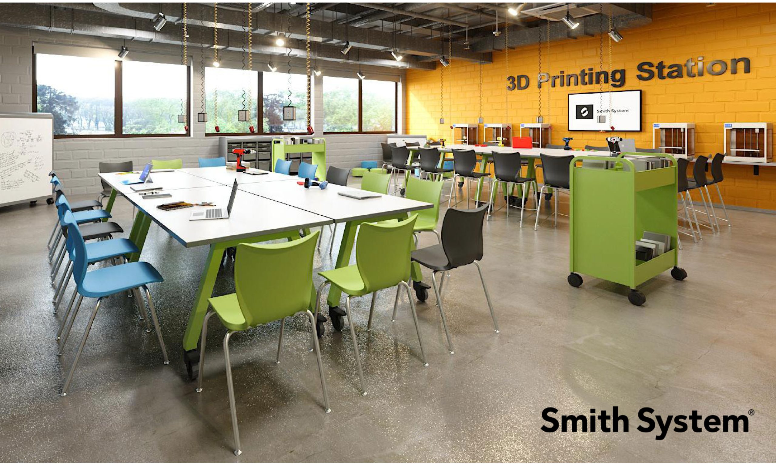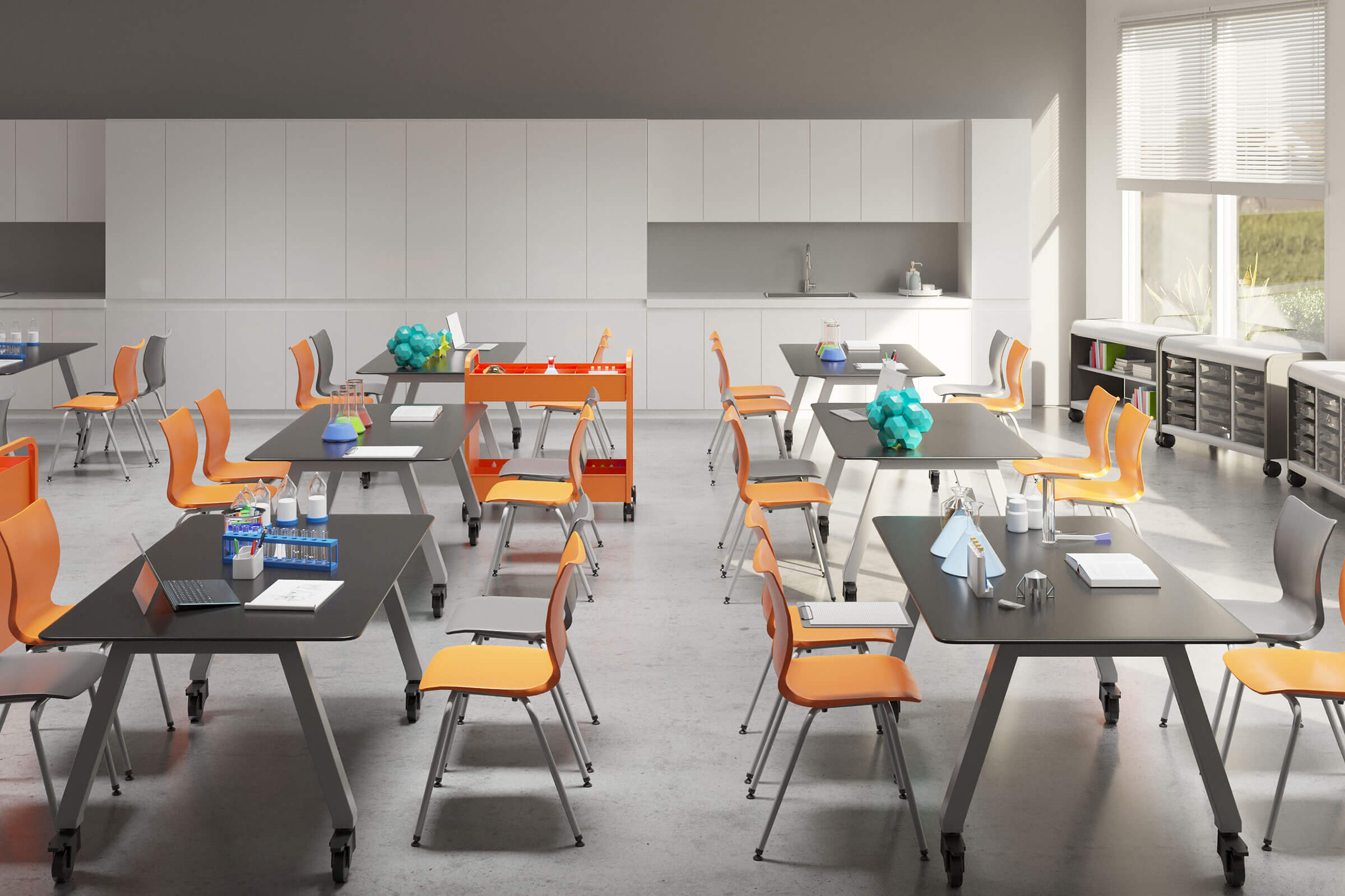 - Durable, adaptable furnishings built for movement and creativity